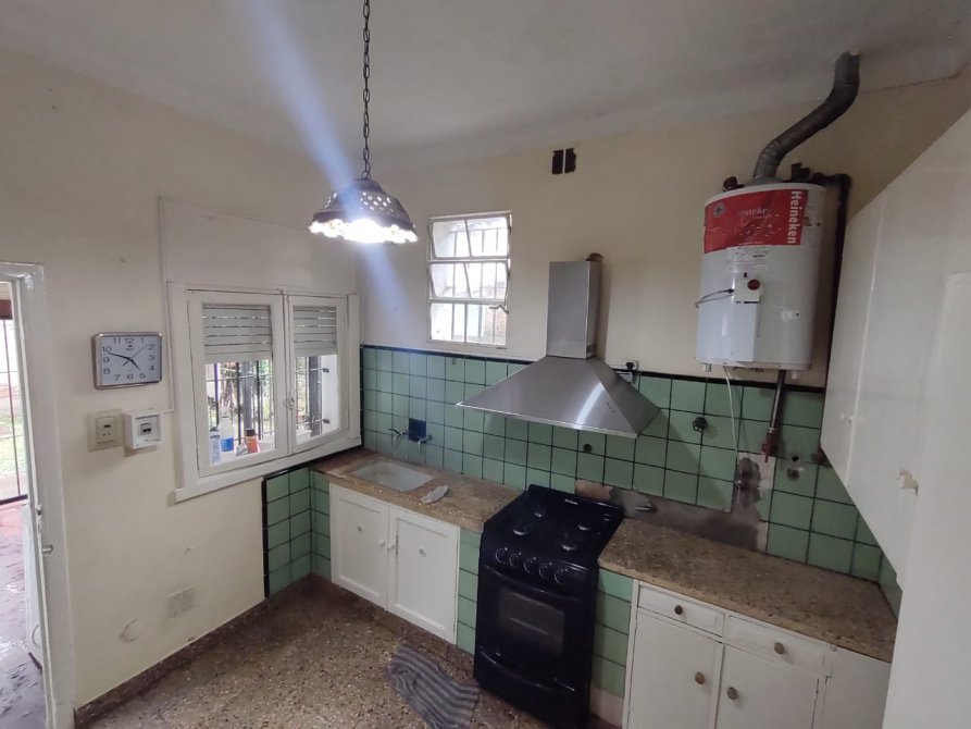 Consta de 3 dormitorios, living-comedor , cocina equipada con mesada , bajo mesada, lavadero con cerramiento.- Amplio galpón.- Muy buen estado.-.